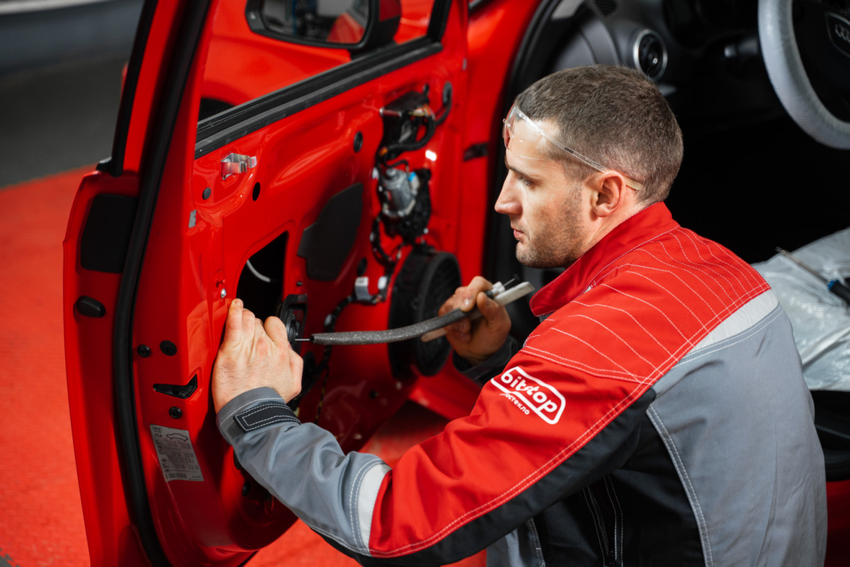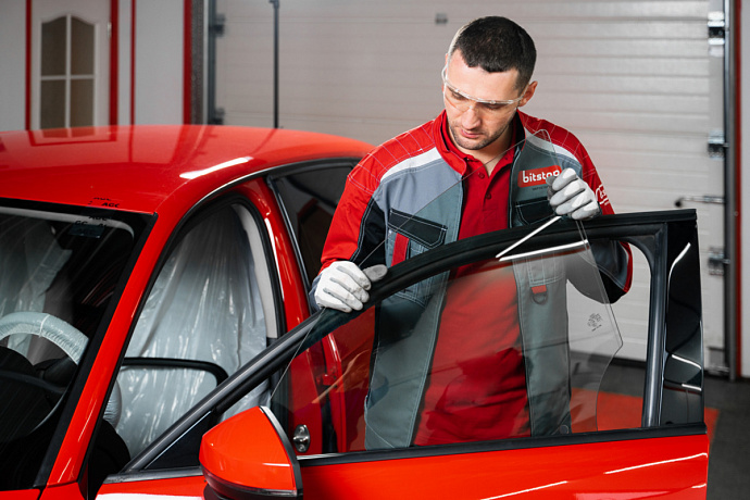 Как в Bitstop устанавливают боковое стекло